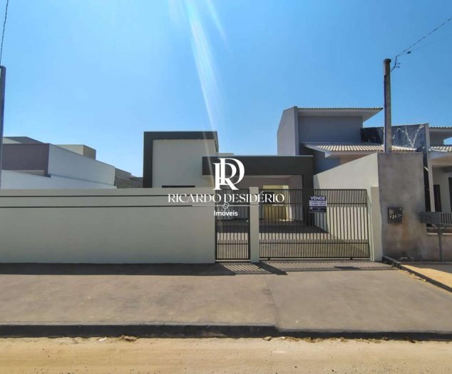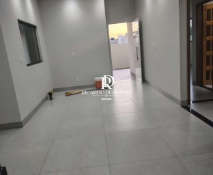 Casa nova de alvenaria, contendo: 1 suíte, 2 quartos, bainheiro social, sala e cozinha conjugada, lavanderia, garagem para 2 carros, e quintal na frente e nos fundos com grama. Acabamentos com piso em porcelanato, portas internas de madeira, porta principal de lambri, forro em gesso. Aceita proposta, aceita financiamento.